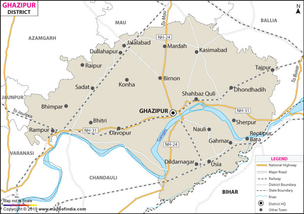 Ghazipur district is situated in eastern part of Uttar Pradesh. Total area of the district is 3377 sq km with total population of 30.37 lakh with density of population as 899 persons per sq km. The district has 16 blocks viz. Zakhniya, Manihari, Sadat Saidpur, Devkali, Virnao, Mardh, Ghazipur, Karanda, Kasimabad, Varachavar, Mohammadabad, Bhavarkol, Jamania, Reotipur and Bhadaura. Out of 16 blocks, 8 blocks (Karauda, Kasimabad, Barachawar, Mohammadabad, Bhawarkole, Zamania, Rewatipur, Bhadaura) comes under Krishi Vigyan Kendra, Ghazipur II.
